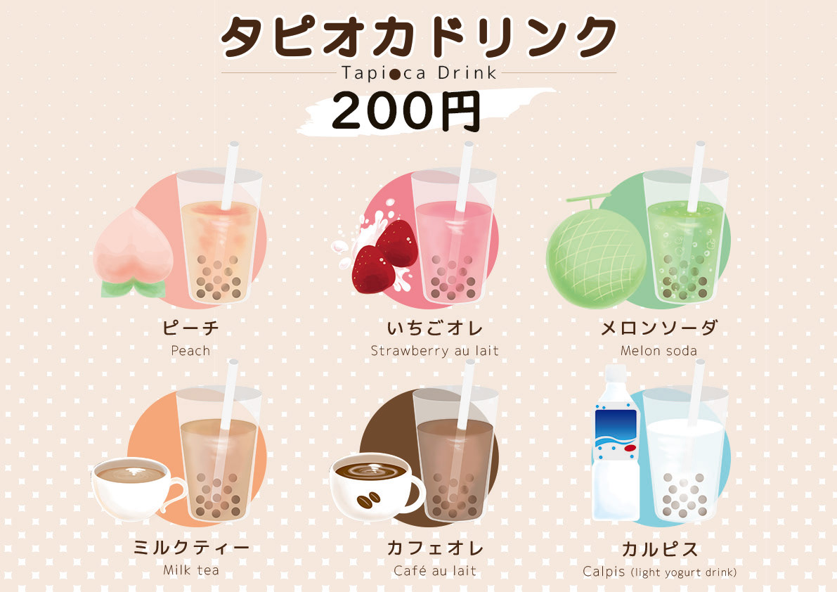 2018.7.27 | Tapioca drink menu design at a local Rakurakuen festival in Hiroshima, Japan.